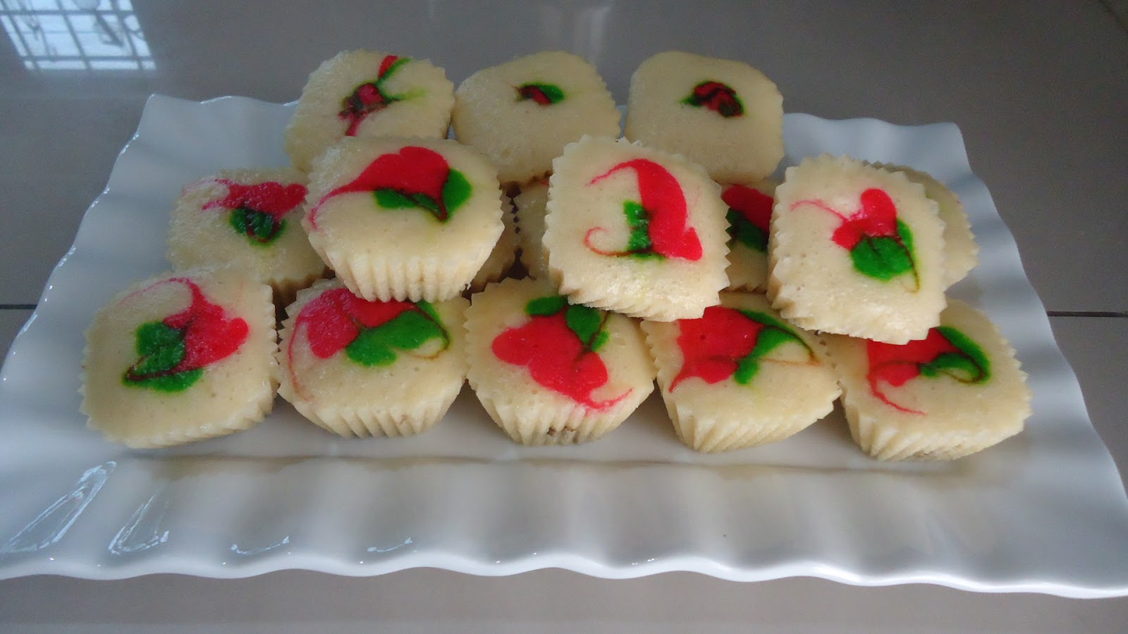 2 biji telur 1 cawan gula 1 sudu teh ovalett 1 cawan air ais krim soda brand fn 2 cawan tepung gandum sedikit esen vanila pewarna kesukaan paper cup.