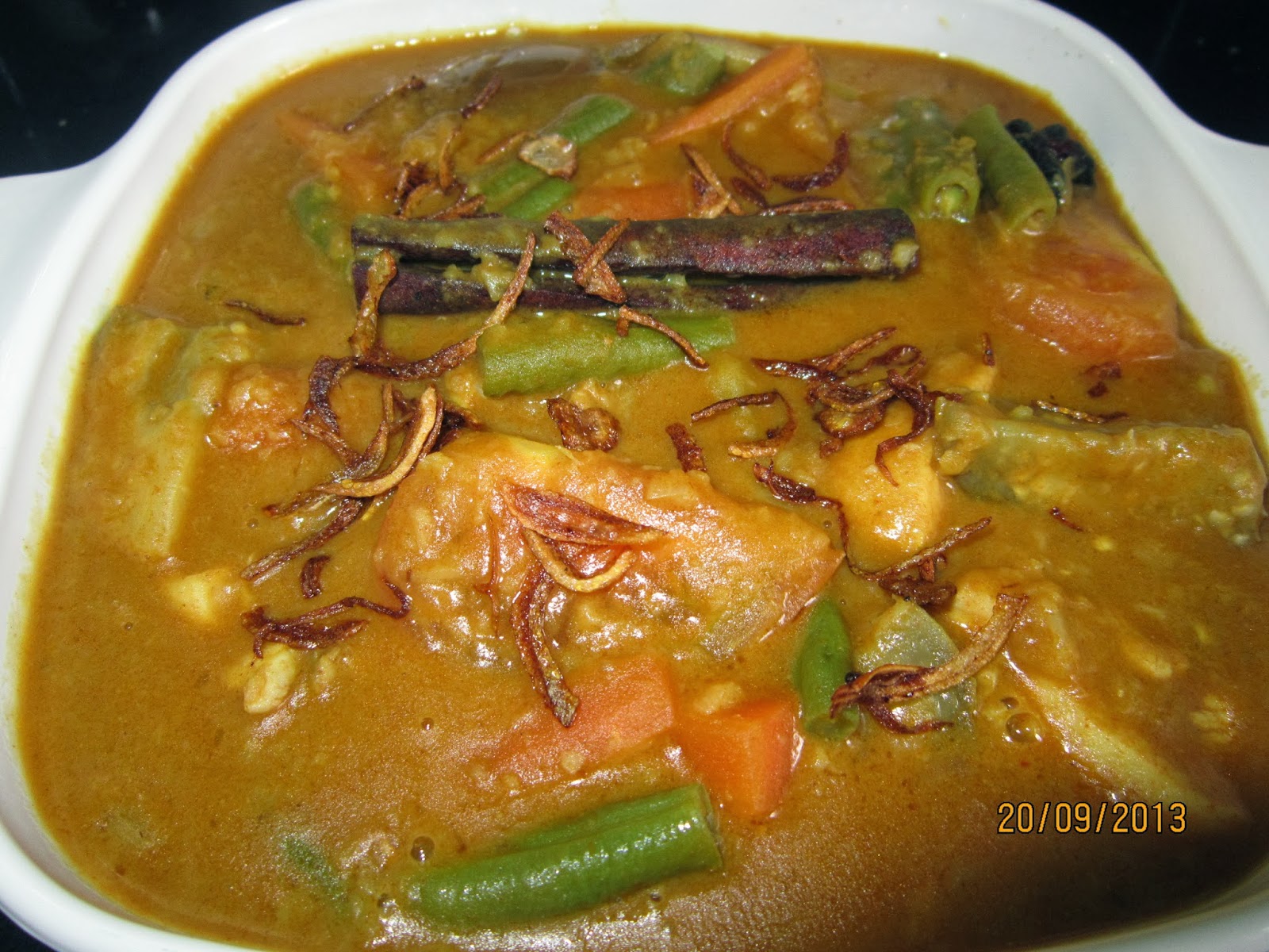 Hari ni saya masak dalca ayamhahhhh jangan pelik pulak ya. 1 mangkuk isi ayam dipotong dadu 1 cawan santan 2 genggam kacang dal rebus hingga empuk 1 biji cili hijau potong 1 inci 1 biji kentang belah 12 1 biji karot potong mancis 3 biji kacang panjang potong 1 12 inci 1 biji terung bulat belah 6 1 biji tomato belah 4 3 sudu makan rempah kari daging 1 bunga lawang. Untuk resipi ini che nom gunakan kacang dhal australia atau kacang dhal yang berwarna oren. Yang lain lain pun sedap juga.
