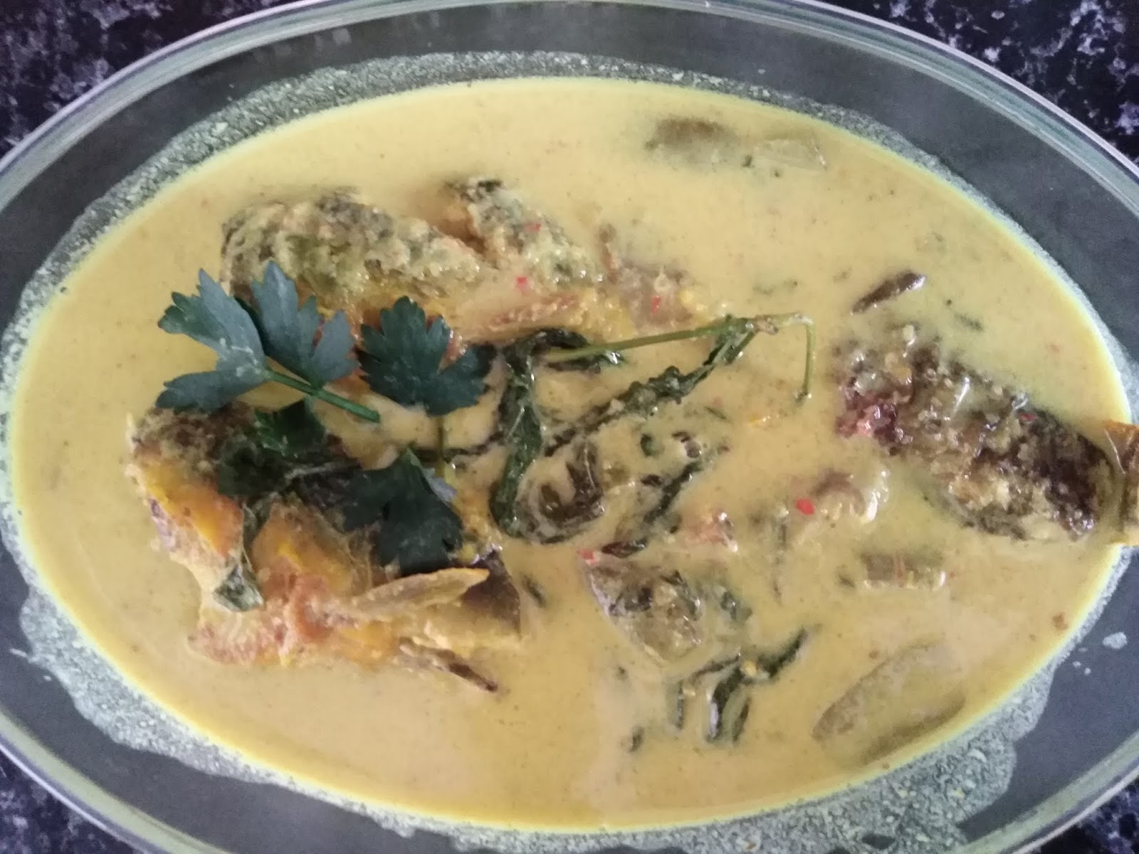 Setakat ni saya tk jumpa lagi masakan ni di tempat lain. Ikan di siang dan basuh bersih. Masukkan bahan kisar serbuk kari santan pekat daun kesum dan asam gelugur ke dalam periuk. Kalau makan masakan ni saya akan teringat dekat mak di kampung.